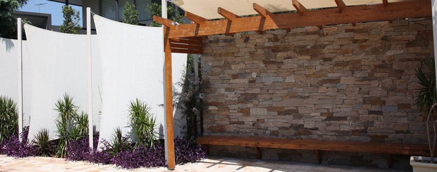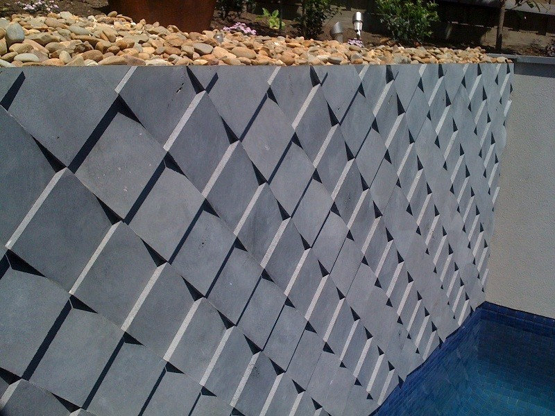 Its truly authentic dry-stack look, helping create a perfect balance with the darker paving, pool, pool house and soft landscaping.